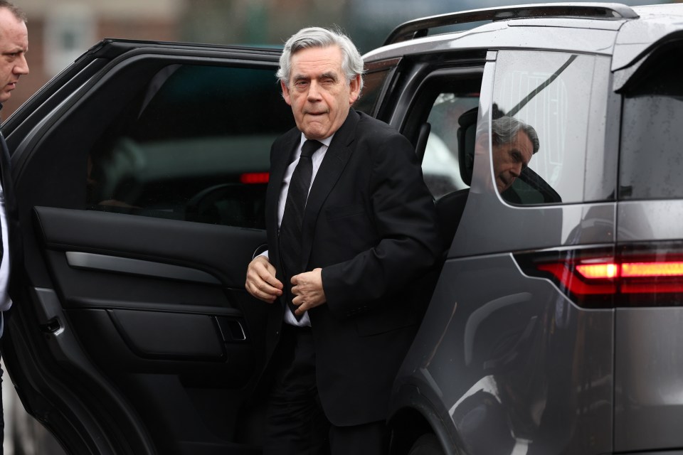 Gordon Brown arriving at Sir Tony Lloyd's funeral.