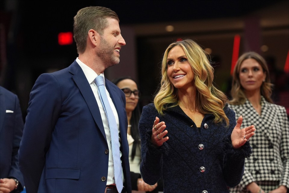 The wife of Eric Trump was by her husband’s side during President Trump’s post-inauguration rally at Washington DC’s Capital One Arena.