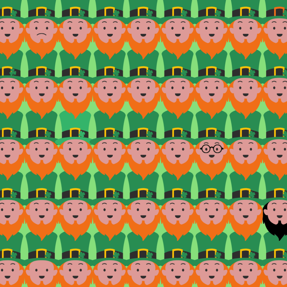 Everyone can see the leprechauns, but only those with a genius-level IQ can spot the 7 odd ones out – luck has nothing to do with it.