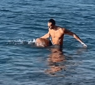 Footage shows the ripped Milan-based influencer walking around the crystal clear waters before he is suddenly pounced upon by the octopus.