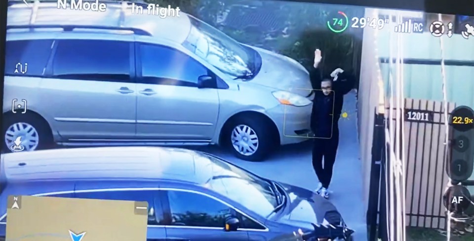 Drone footage shows an unknown man outside the suspect Shamsud Din Jabbar’s home in Houston, Texas.