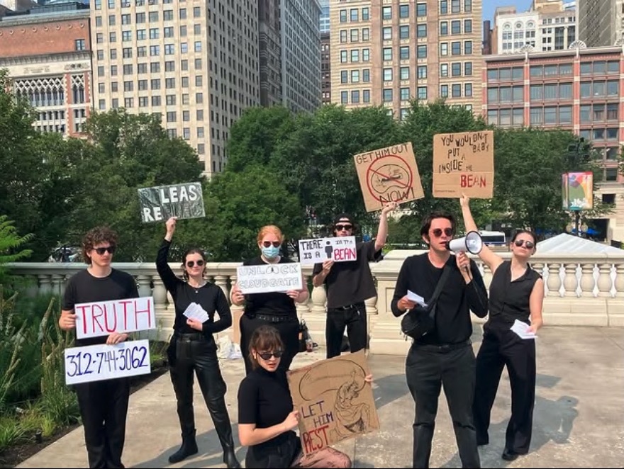 Earlier this month, a small group of protesters started gathering at the iconic stainless steel artwork.