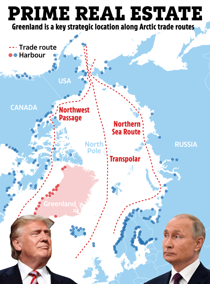 Far from being a useless block of ice, Greenland is a vital strategic asset bursting with natural resources and sits bang in the middle of the main Arctic trade routes.