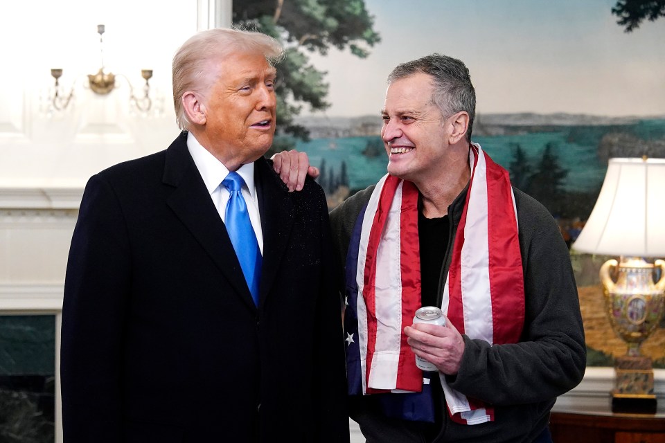 But on Tuesday, after three and a half years behind bars, he stepped off a plane in Washington DC and was greeted by Trump at a snow-covered White House.