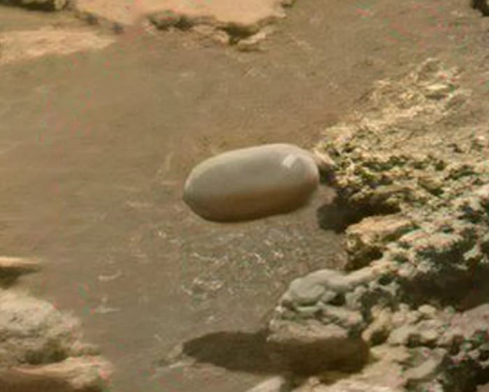 Mars surface with Tic Tac-shaped object.