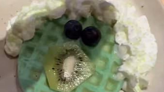 Meghan had also made a green glass of milk to keep on theme, and finished her bake with a sprinkle of salt. She giggled as she put the final touches to the kids’ waffles.