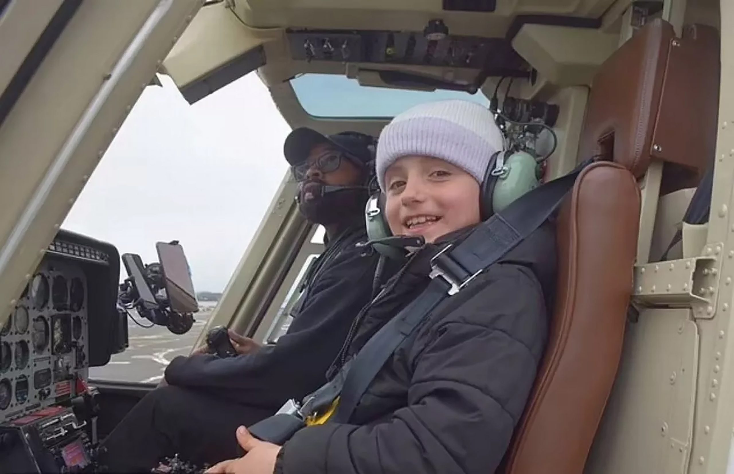 The little girl was captured with a beaming smile on her face as she sat in the helicopter next to the pilot before takeoff.