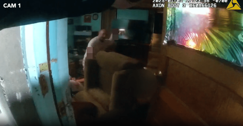 THIS is the disturbing moment that police burst into a man’s home to find him killing his parents – before the cops shoot him dead.