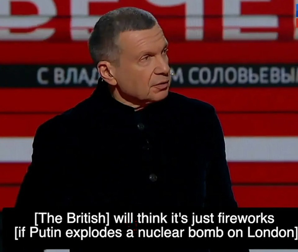 Hours before his nuclear threats, Solvyov launched another attack on British mums as he revealed he wanted Putin to ruthlessly kill their sons in a sick revenge plot.