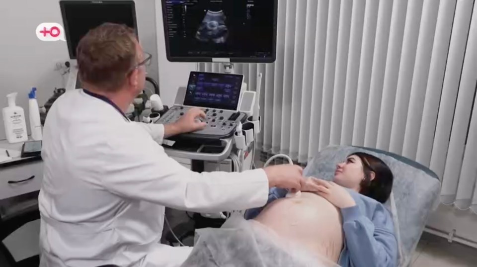 A doctor performing an ultrasound on a pregnant woman.