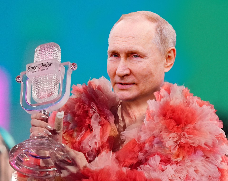 Vladimir Putin mocked up as last year’s Eurovision winner Nemo of Switzerland