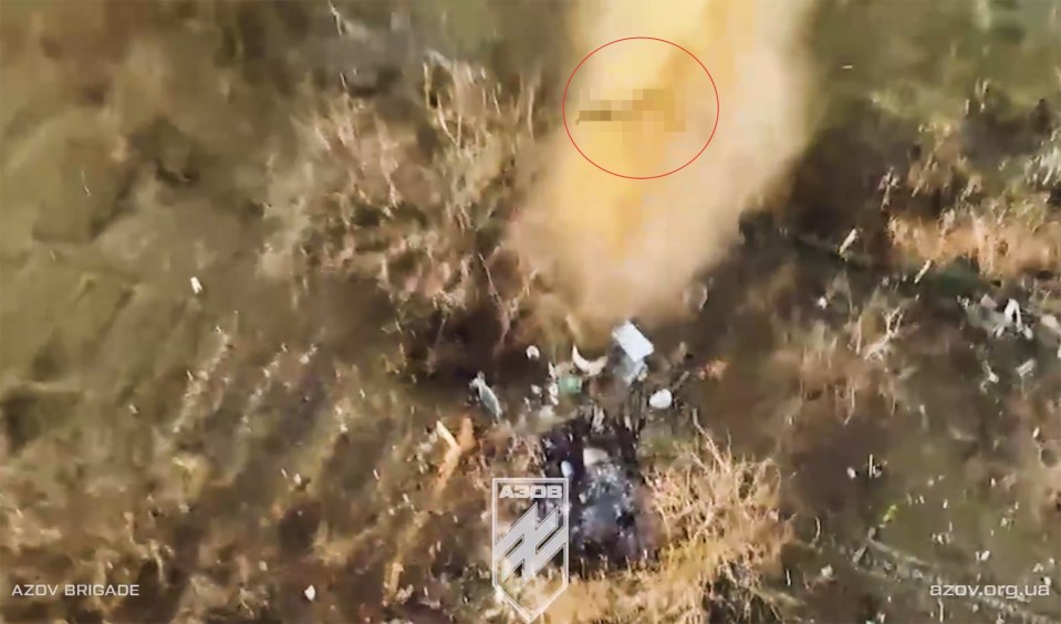 A Telegram account of the grim death said: “The 12th Azov Brigade showed a Russian flying out of a hole into the sky like a cannonball from a gun.”