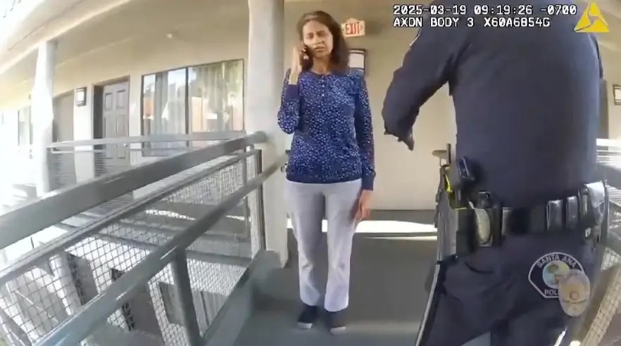 Saritha Ramaraju, 48, was arrested on March 19 for allegedly slitting her son’s throat and stabbing him several times at the La Quinta Inn in Santa Ana, California.
