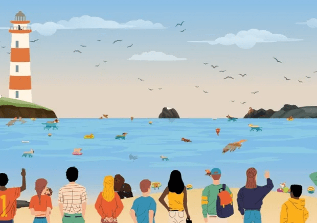 Everyone can see the lighthouse and the sea, but there are 25 dogs secretly hiding in the picture – can you spot them all?