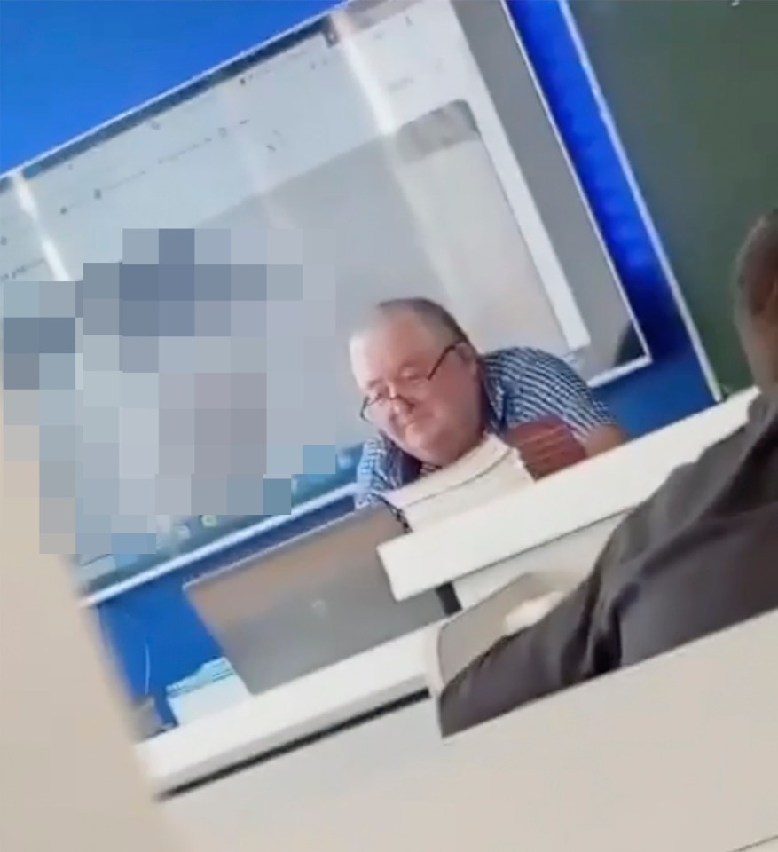 Footage filmed on phones by teenagers at a Russian school show the teacher watching an X-rated video while his laptop was still connected to the main screen.