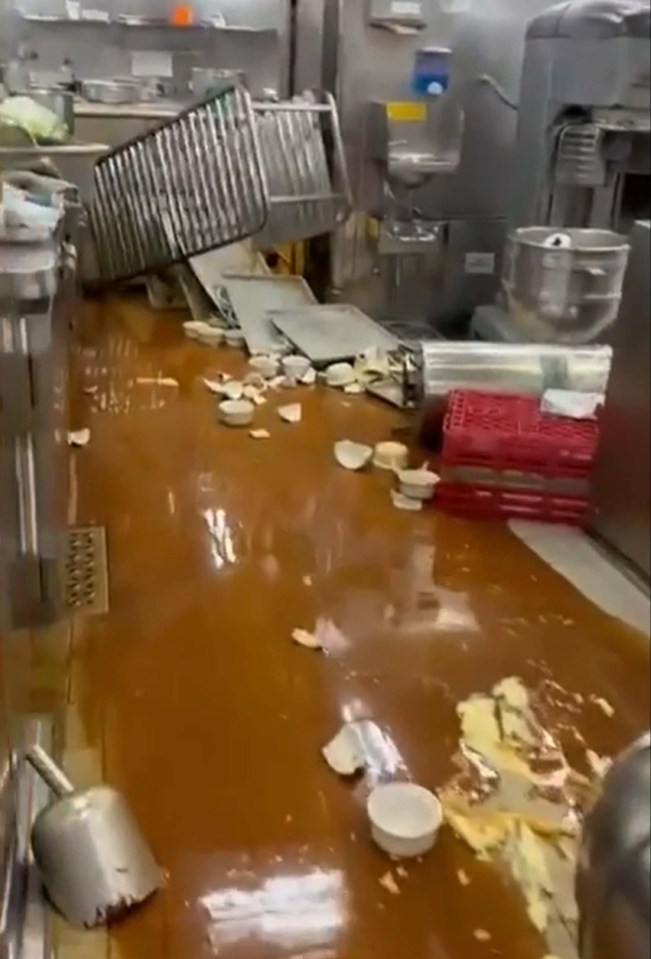 Trays, crockery, utensils and furniture littered the place – with workers gasping shock as they walked around documenting the mayhem.