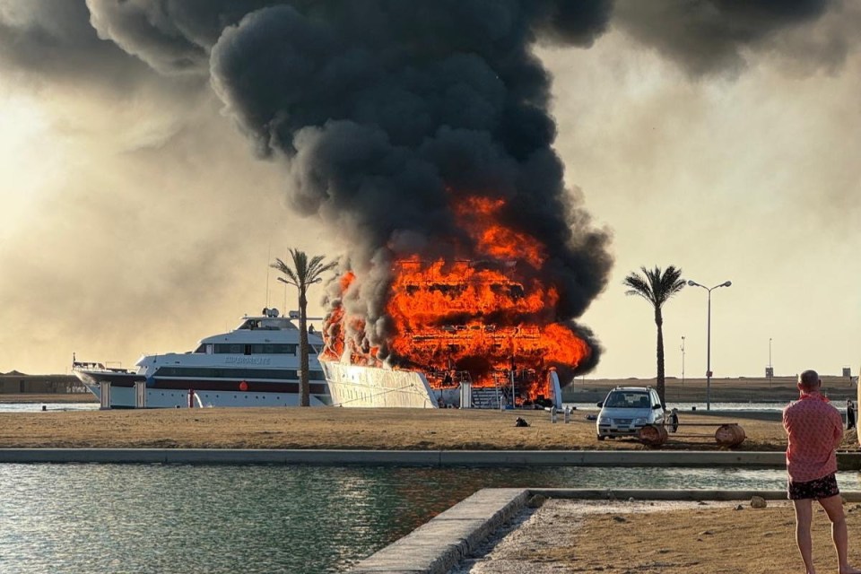 Two British tourists narrowly escaped the disaster, as they ran to safety moments before the boat was engulfed in a cloud of black smoke in Port Ghalib, Egypt.