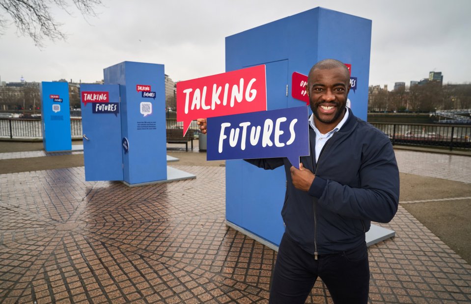 Tim Campbell MBE, launches the new Talking Futures ‘Technical Education Opens Doors’ campaign at a pop-up installation at the SouthbankCredit: SWNS