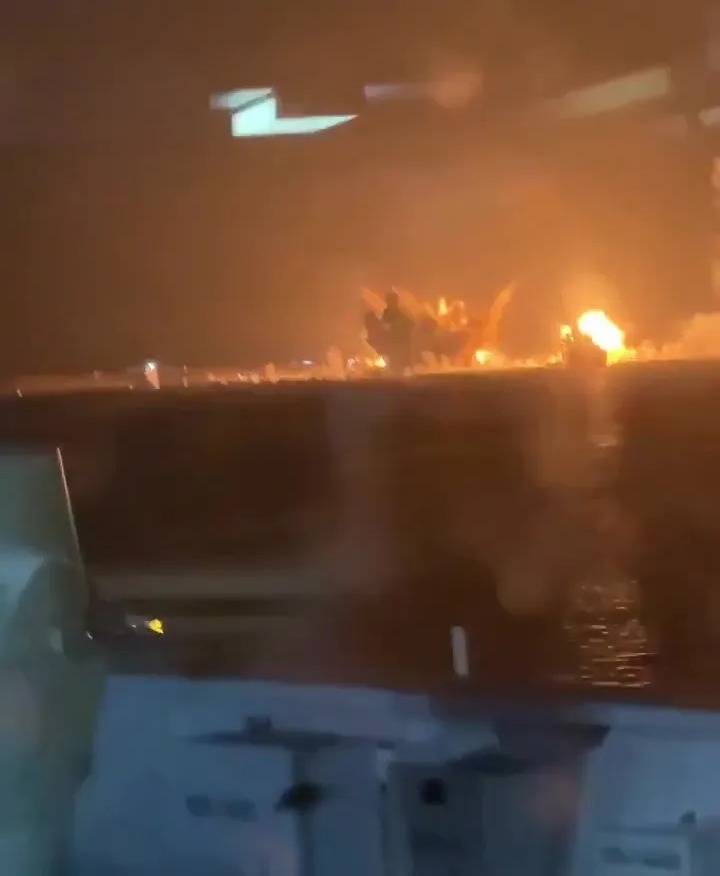 The staggering nighttime video, filmed by Turkish sailors onboard an oil tanker in the Red Sea, shows huge fireballs erupting across the Ras Isa Oil Port.