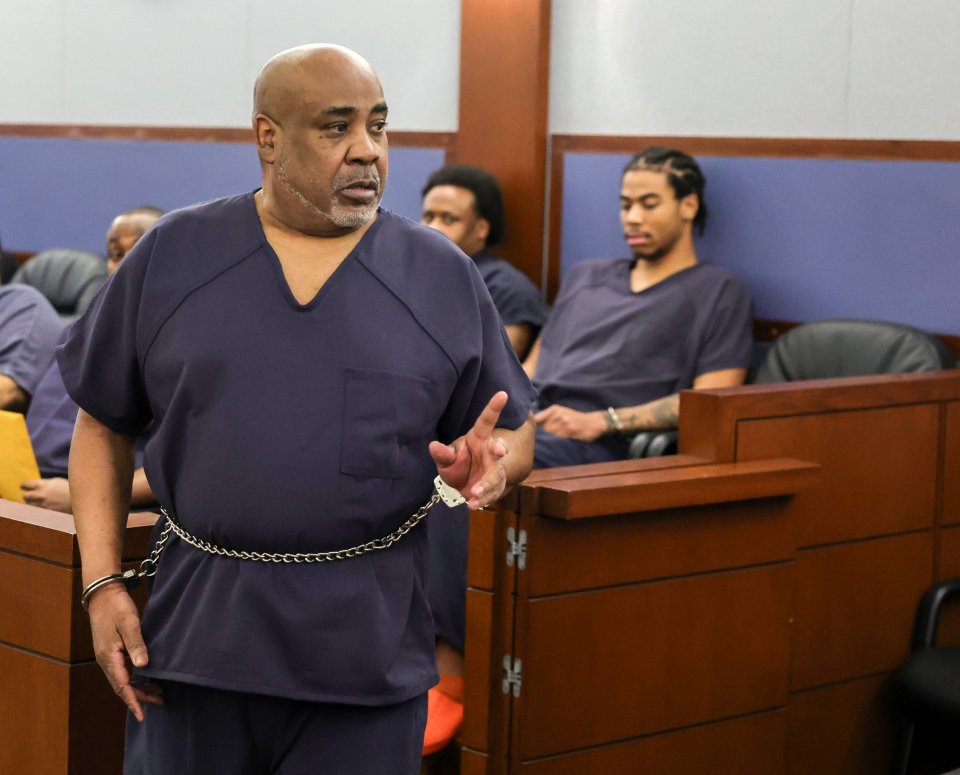 Duane “Keefe D” Davis, 61, glared at his attorney and shook his head in disbelief after learning he may now face life in prison for the September 13, 1996, unsolved shooting.