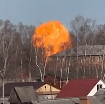 A huge fireball explosion can be seen erupting across the city followed by plumes of thick black smoke.