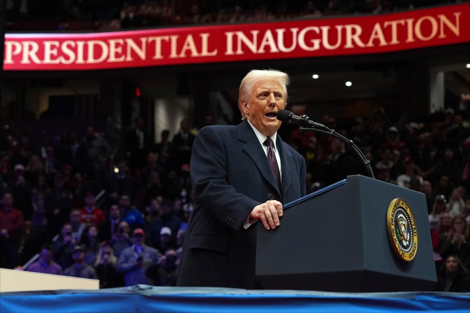 President Donald Trump speaking at a Presidential Inauguration parade.