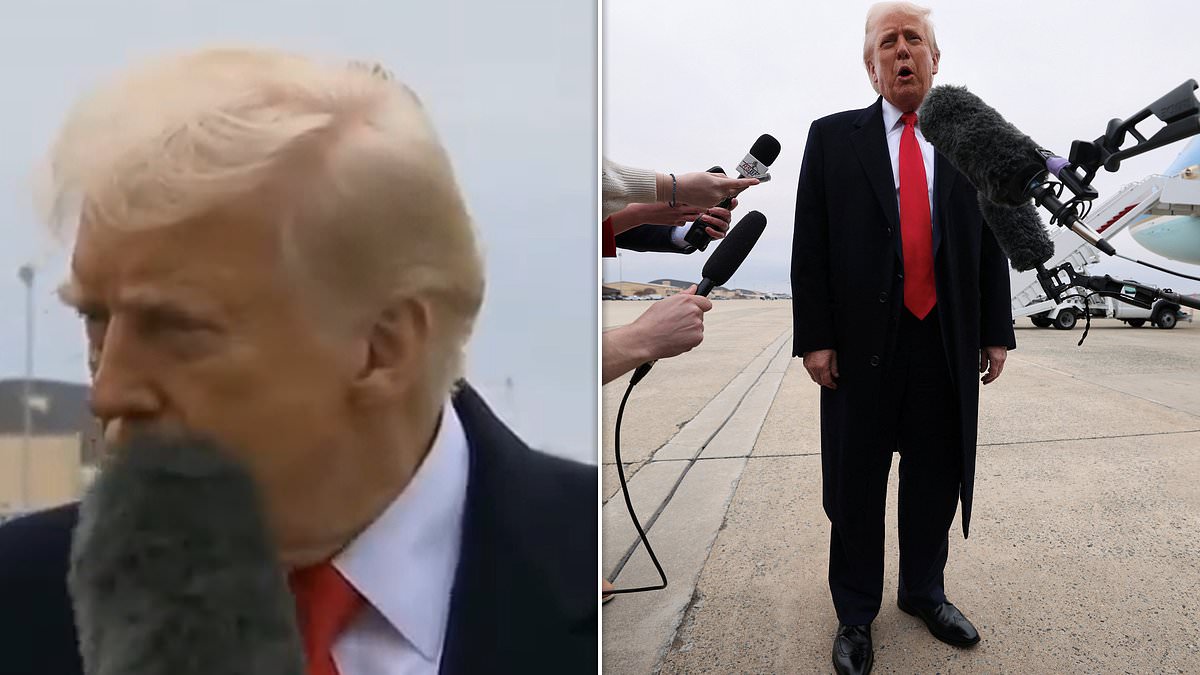 Donald Trump had to shake off a bizarre moment when a boom microphone whacked him in the face during a press gaggle at Joint Base Andrews in Maryland.