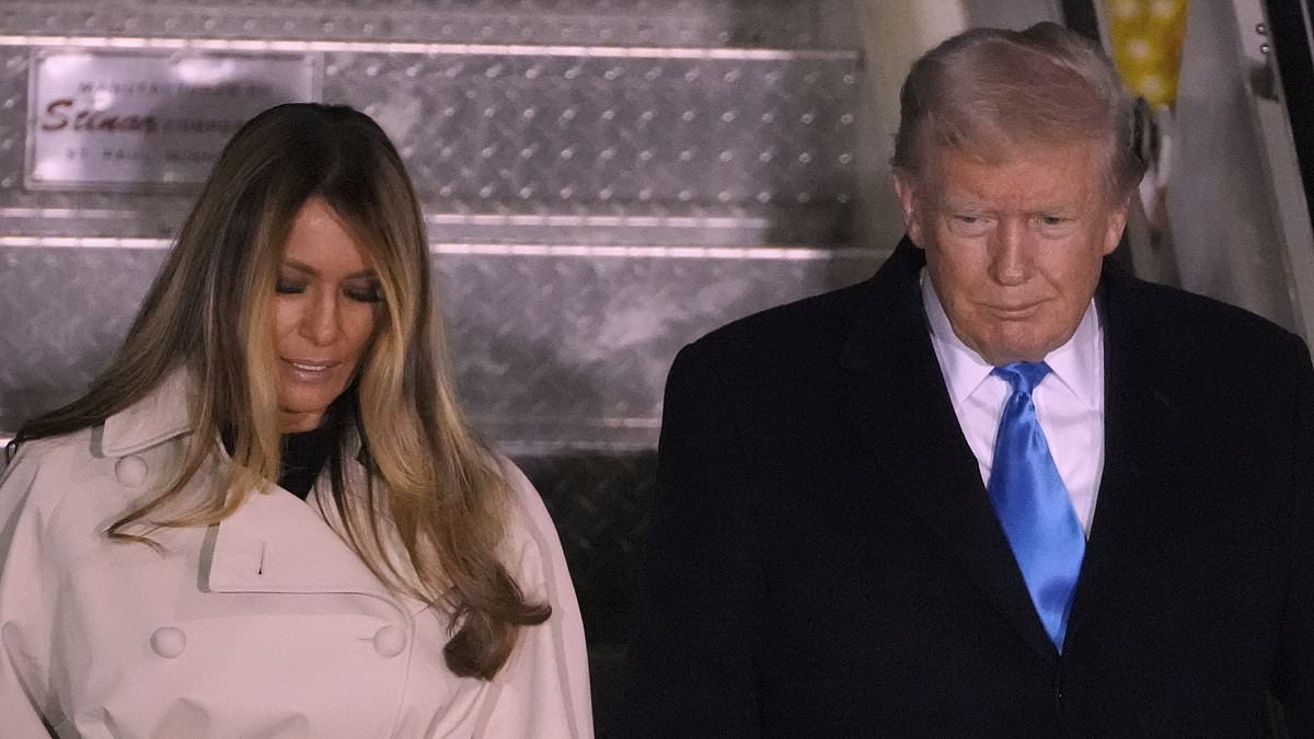 US President Donald Trump and his wife Melania arrive at Rome's Leonardo da Vinci airport last night after travelling on board Air Force One