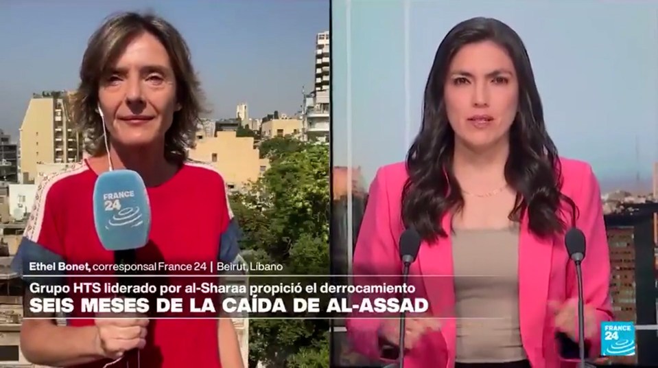 Two France 24 news presenters reporting.