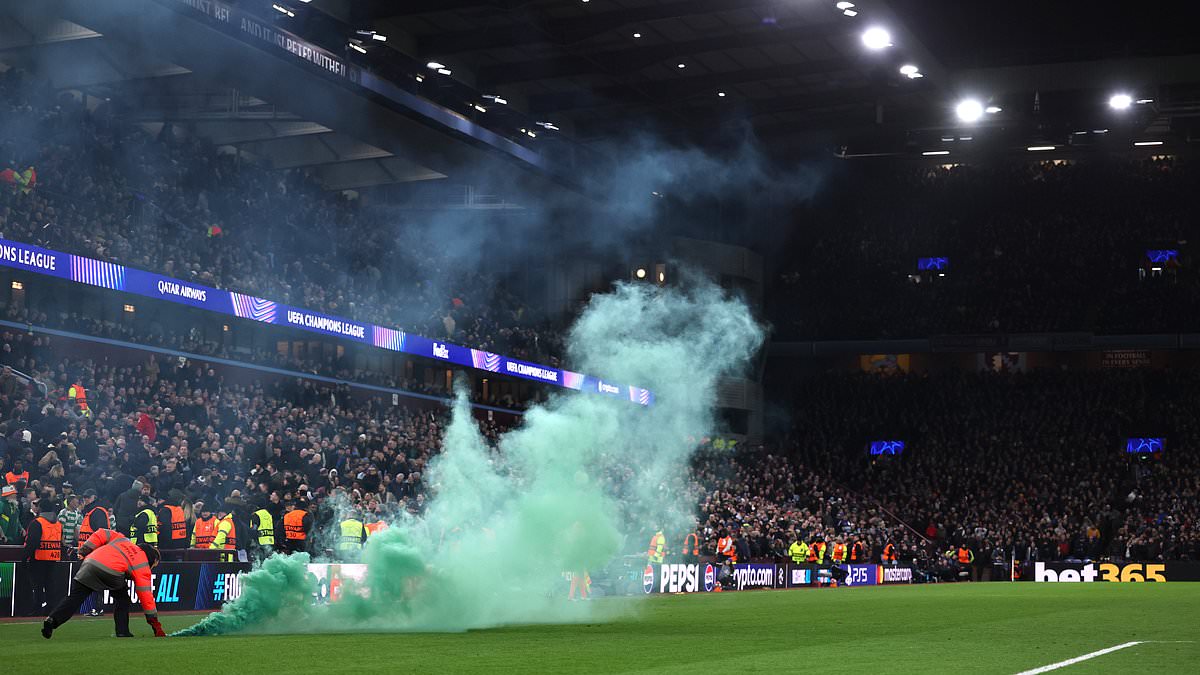 Celtic supporters threw a smoke bomb on to the pitch at Villa Park on Wednesday night
