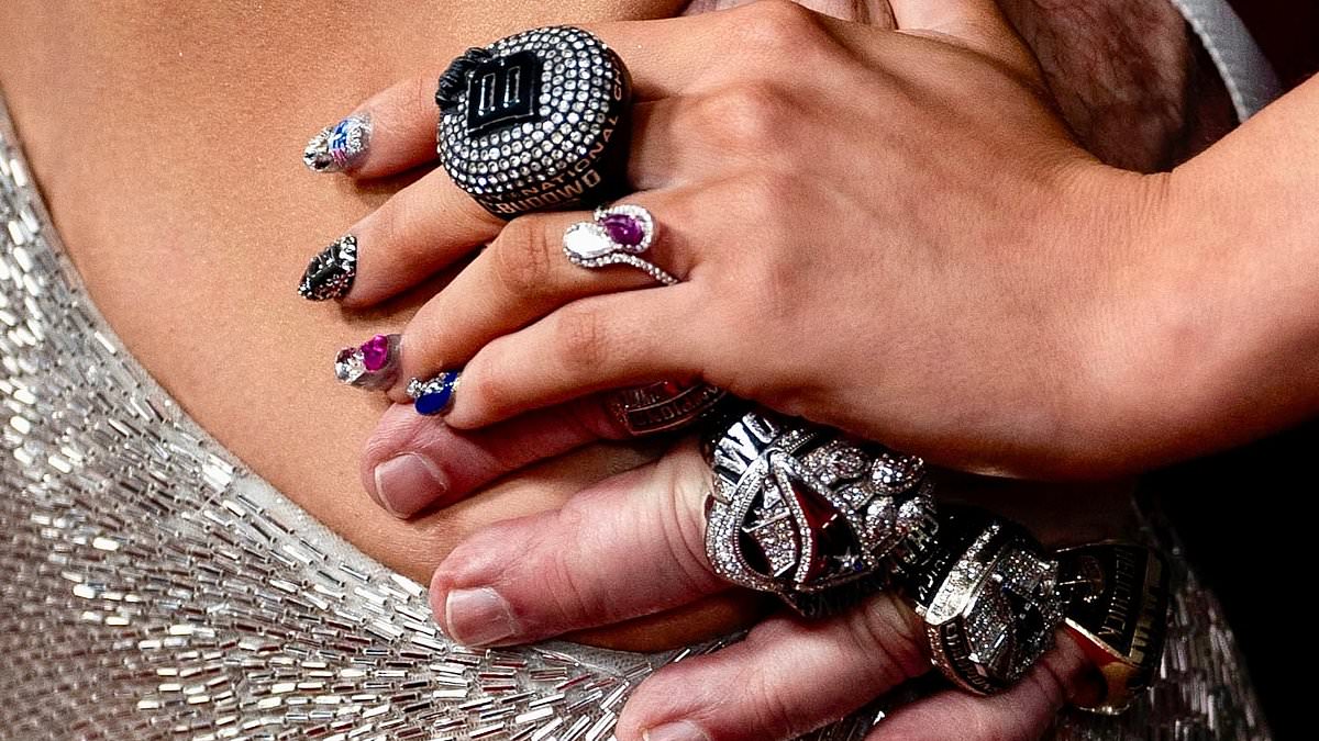 The first image was of her hand on Belichick’s – with Hudson wearing two kinds of rings (a diamond one and what appeared to be a championship ring) while Belichick wore his Super Bowl rings.
