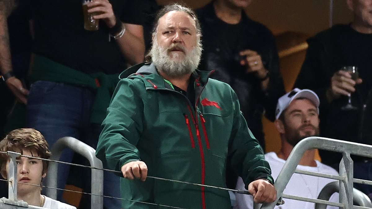 Russell Crowe (pictured at a Souths game in 2021 with Chris Hemsworth, right) is reportedly keen to sell his stake in the NRL team