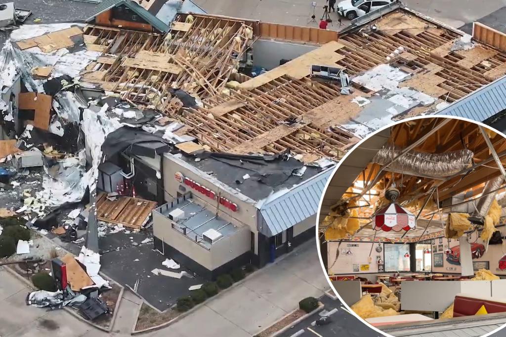 The tornado ended up partially destroying the Burger King and gas station, trapping 13 Burger King employees and customers inside a bathroom where they were taking shelter.