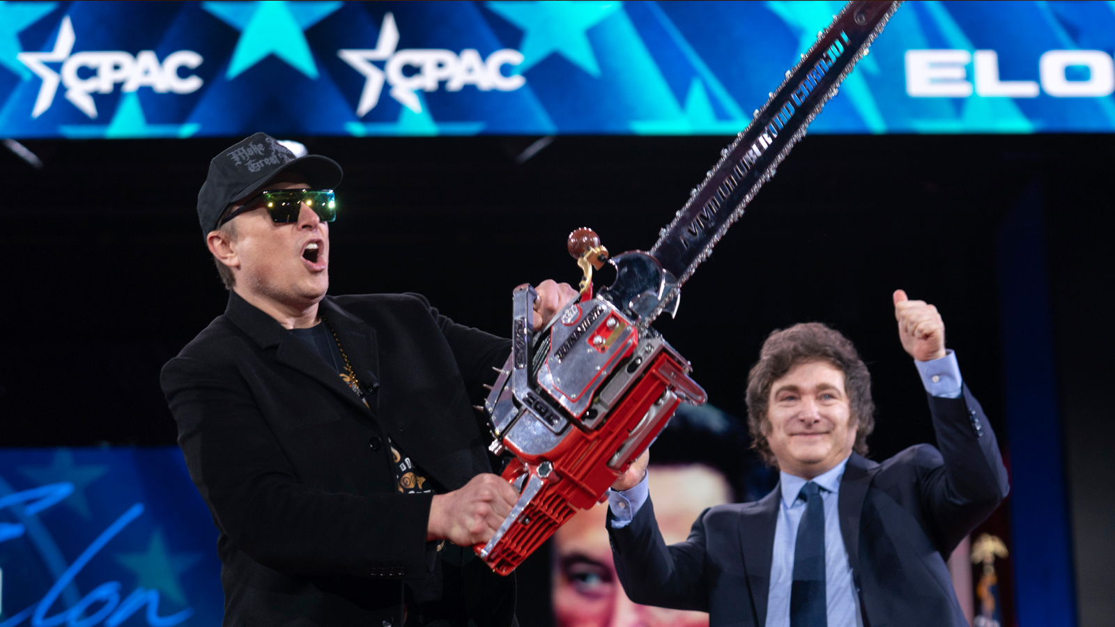 Last week he stood on stage at the Conservative Political Action Conference gathering outside Washington, where he boasted of his exploits and hoisted a blinged-out, Chinese-made chainsaw above his head that was gifted by Argentinian President Javier Milei.