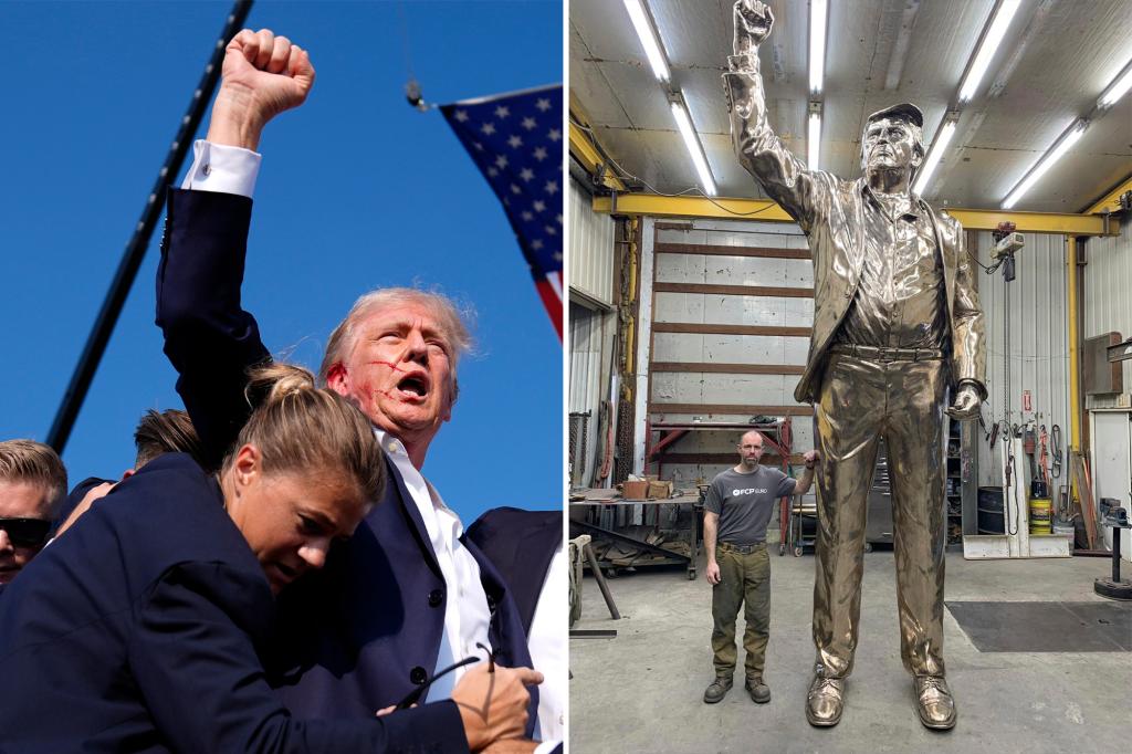 Sculptor Alan Cottrill’s “Don Colossus” immortalizes the iconic moment Trump defiantly pumped his fist into the air after narrowly escaping an assassination attempt during a rally in Butler, PA on July 13.