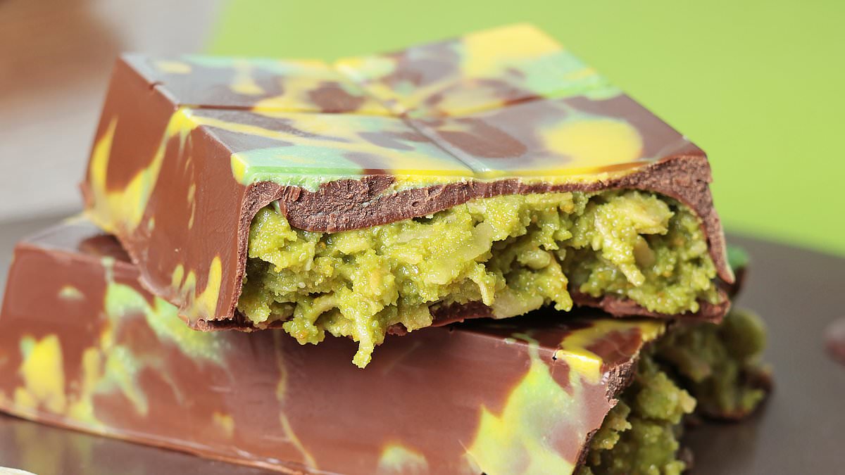 The popular milk chocolate bar contains crispy knafeh, pistachio cream, and tahini spread. It was first introduced in 2021 by the Dubai-based Fix Desert Chocolatier.