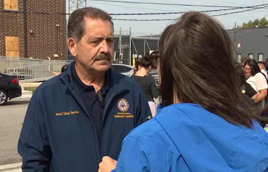 Garcia and other leaders in the Hispanic community on Saturday gathered outside an ICE facility in suburban Broadview to decry federal tactics. The congressman accused immigration officers of “severe racial profiling.”