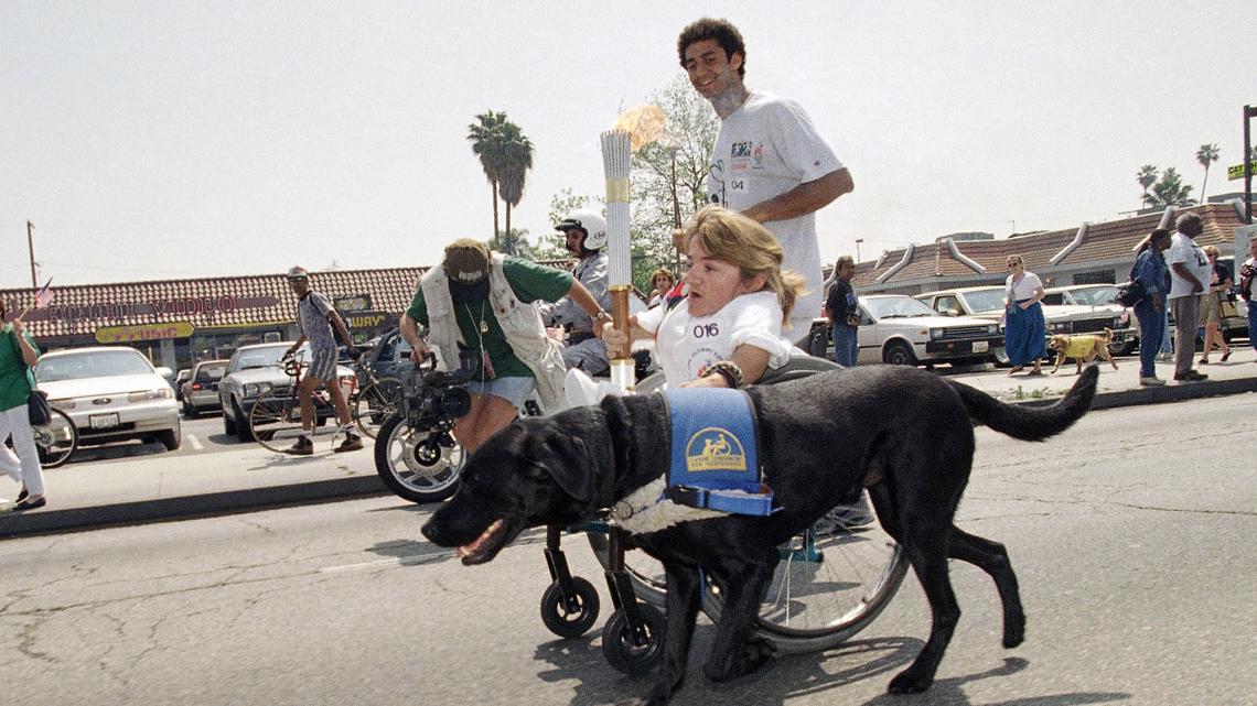 She also carried the Olympic torch in 1996 through Los Angeles alongside her canine companion Romer. She helped relay the Olympic flame after being chosen as a “community hero” by her hometown residents in Duarte, California, according to the Associated Press.