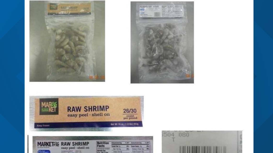 The recalled Market 32 brand frozen raw shrimp was sold at Price Chopper stores in Connecticut, Massachusetts, New Hampshire, New York, Pennsylvania and Vermont in 1-lb bags.