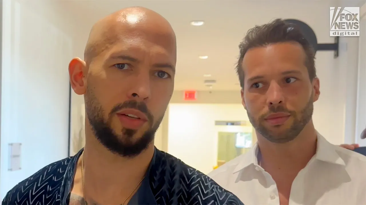 Andrew Tate, 38, and his brother Tristan Tate, 36, arrive into Fort Lauderdale International airport on Thursday, February 27, 2025. The pair returned to the United States after Romanian prosecutors agreed to lift travel restrictions imposed as part of a sex trafficking case there. (MiamiPIXX/VAEM/BACKGRID)