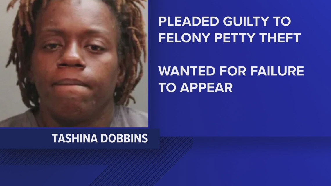 Dobbins, who was charged with petty theft on Dec. 21, pleaded guilty and was supposed to be sentenced on March 31. She was instead a no-show and is being sought on a failure to appear charge, court records show.