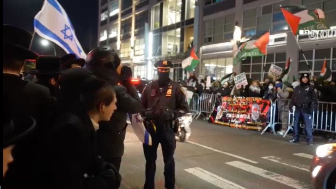 A group of anti-Israel demonstrators descended on an Orthodox Jewish neighborhood in Brooklyn on Tuesday leading to violent clashes and chaotic scenes, according to reports and video.  (FNTV)