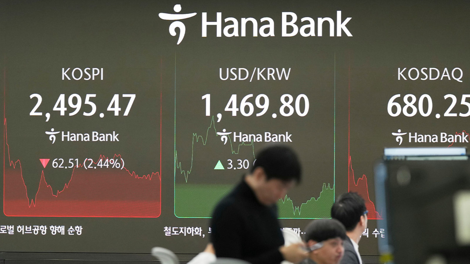 In South Korea, the Kospi fell 2.6% to 2,492.49, while Australia’s S&P/ASX 200 sank 1.6% to 7,856.80.
