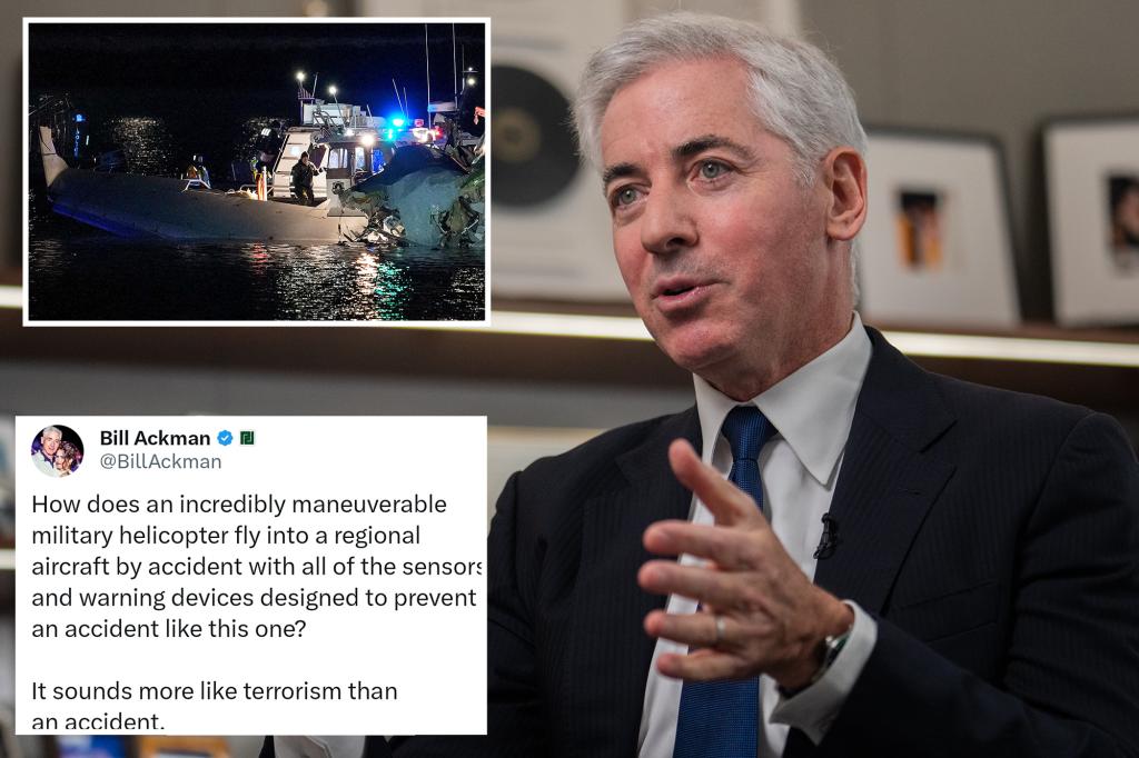 “How does an incredibly maneuverable military helicopter fly into a regional aircraft by accident with all of the sensors and warning devices designed to prevent an accident like this one?” Ackman, founder and CEO of Pershing Square Capital Management, wrote to his 1.6 million followers on X on Wednesday night.