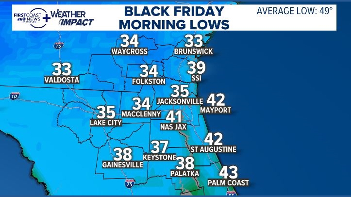 Friday morning is expected to bring particularly biting conditions, with wind chills plummeting into the 20s, stretching all the way to the coastal areas. Additionally, those residing north and west of Jacksonville should prepare for a possible inland freeze.