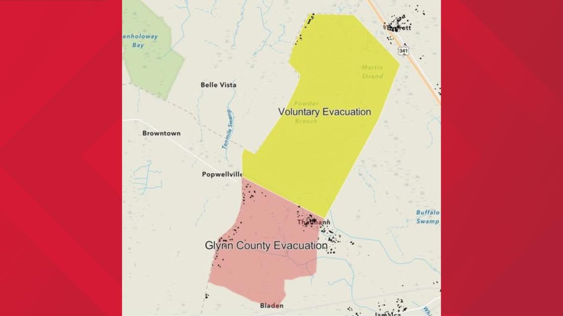 The Glynn County Board of Commissioners issued mandatory evacuation orders Saturday for residents closest to the Brantley County line: