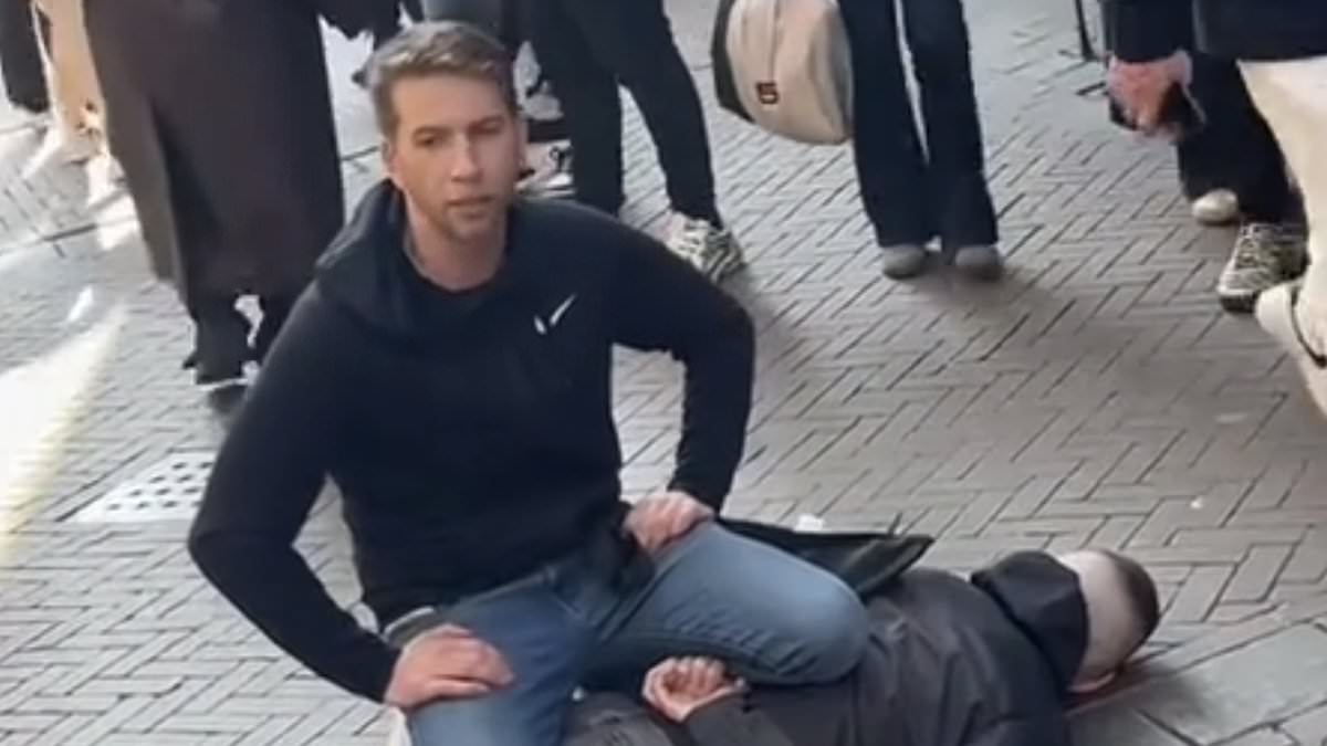 Dramatic footage showed the individual pinning down the attacker and restraining him from any further assaults on the busy street
