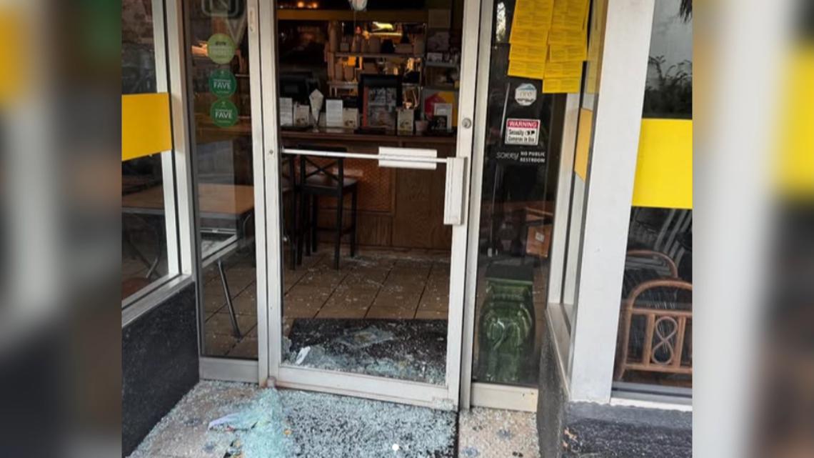 Sake House, another restaurant down the street, also hit. Workers there showed First Coast News the cinder block thrown through their front door and the suspect took the entire register.