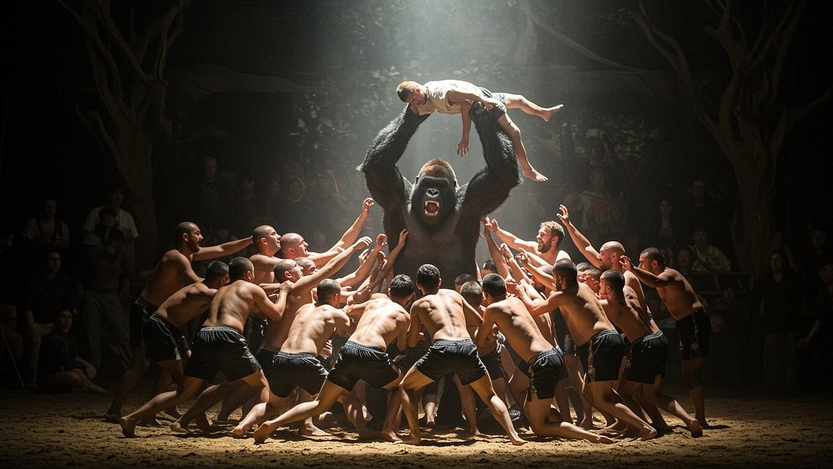 More than 288million people have joined the online debate on X after a user called DreamChasnMike suggested that it would take 100 ‘dedicated’ humans to overpower one gorilla – as in this AI generated image