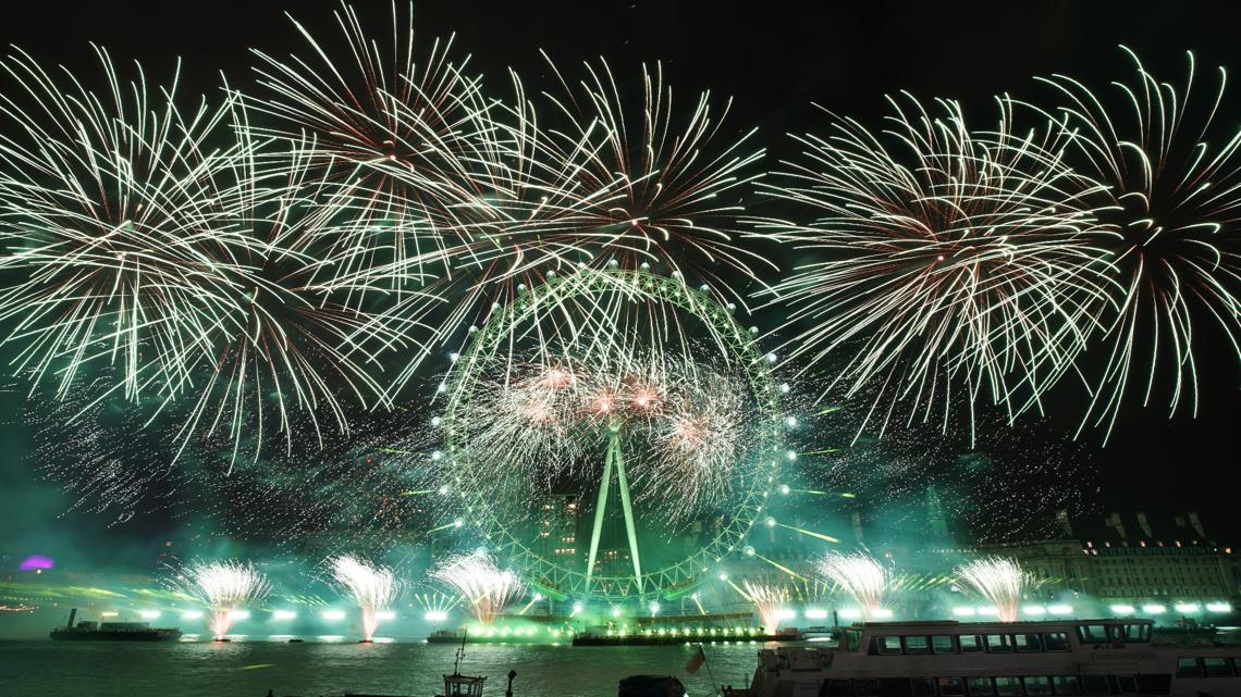 London rang in the New Year with a pyrotechnic display along the River Thames. With a storm bringing bitter weather to other parts of the United Kingdom, however, festivities in Edinburgh, Scotland, were canceled.
